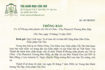 23/12/20251:24 Giáo phận Cần Thơ: Chính thức loan báo Thánh lễ Phong Chân phước Cha Phanxicô Xaviê Trương Bửu Diệp 2:35 Tổng Giáo phận Hà Nội: Đức Tổng Giám mục Marek Zalewski gặp gỡ, chia sẻ với quý thầy tại…